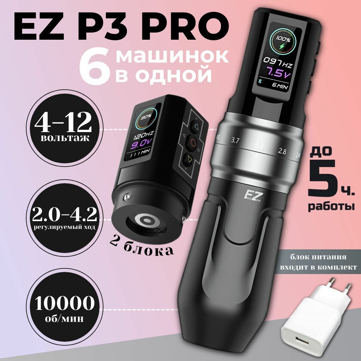 Купить Тату машинка беспроводная для татуажа с доп блоком EZ P3 Pro Matte Gray (два блока) с доставкой по всей России.
