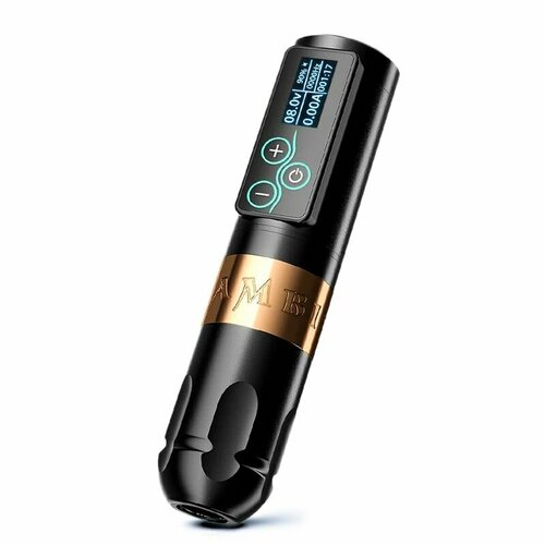 Ambition Vibe имеет тот же размер, что и Soldier: 145 мм в длину и 32 мм в диаметре. Мы усовершенствовали материал изготовления и сделали его из высокопрочного алюминия, что позволило уменьшить вес машинки до 185г. Вместе с этим мы улучшили балансировку, что позволяет сделать процесс нанесения татуировки во время длительных сеансов более комфортным. Батарея Ambition Vibe оснащена высокочувствительными сенсорными кнопками, что в корне меняет представление о работе с привычными беспроводными тату машинками. Переключать вольтаж можно даже тогда, когда вы уже в перчатках, а машинка обернута барьерной защитой. Машинка Ambition Vibe оснащена светодиодным экраном, на котором можно увидеть необходимую информацию. Она отображает рабочий вольтаж, оставшийся заряд батареи, частоту ударов и таймер. Благодаря этим сведениям, мастер сможет понимать, как распределять нагрузку во время сеанса. Емкость аккумулятора составляет 2400 мАч. После проведения многочисленных тестов было выявлено, что полностью заряженный аккумулятор выдерживает более 7 часов работы на вольтаже 8. Аккумулятор полностью заряжается за 3 часа с помощью кабеля Type-C. Машинка оснащена функцией jump-start, которая подает 10В на двигатель в момент старта аппарата, позволяя с легкостью использовать даже такие крупные пайки, как 29MG. На дисплее Ambition Vibe отражается текущий вольтаж и частота ударов в минуту, так что при изменении первого, показатели второго также будут меняться. Благодаря информации о количестве ударов в минуту, можно получить больше информации о работе машинки. 4.5V-12V - рабочий вольтаж, что соответствует ~72Гц - ~196 (уд/мин). Изменение вольтажа происходит с шагом 0.1V. Ambition Vibe оснащена бесколлекторным мотором Ambition Custom Motors и эксцентриком 4.0, что обеспечивает дополнительную мощность и более продолжительный срок службы машинки. Эксцентрик изготовлен из нержавеющей стали, которая является долговечным материалом. Это обеспечивает машинке сохранять баланс при работе как с контуром и плотным закрасом, так и тенями, а также цветными работами.