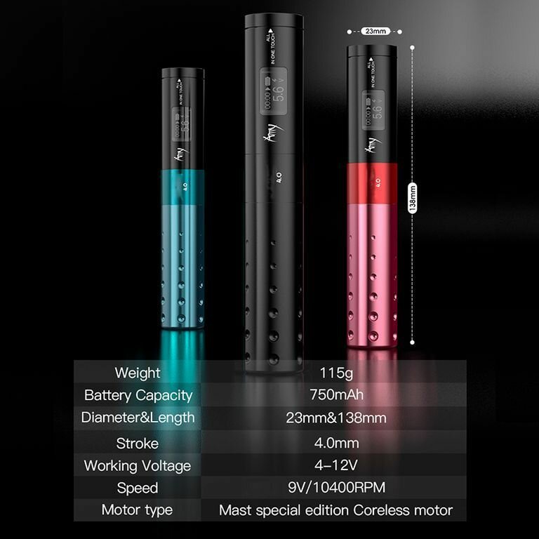 Беспроводная машинка ручка Pen для тату и перманентного макияжа MAST Amy With 4mm Stroke Black: сравнение цен, характеристики, фото, актуальное наличие и цены.