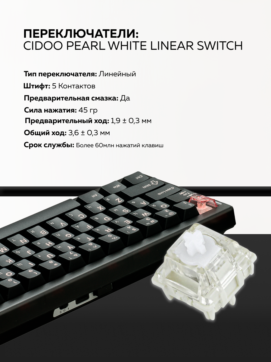 Беспроводная механическая клавиатура Cidoo QK61 V2 (Black), русская раскладка: сравнение цен, характеристики, фото, актуальное наличие и цены.