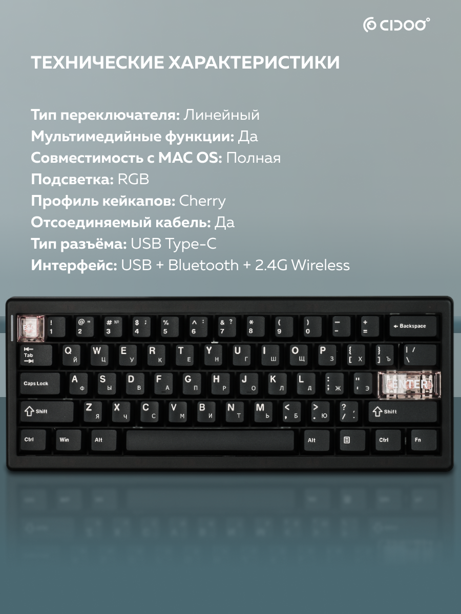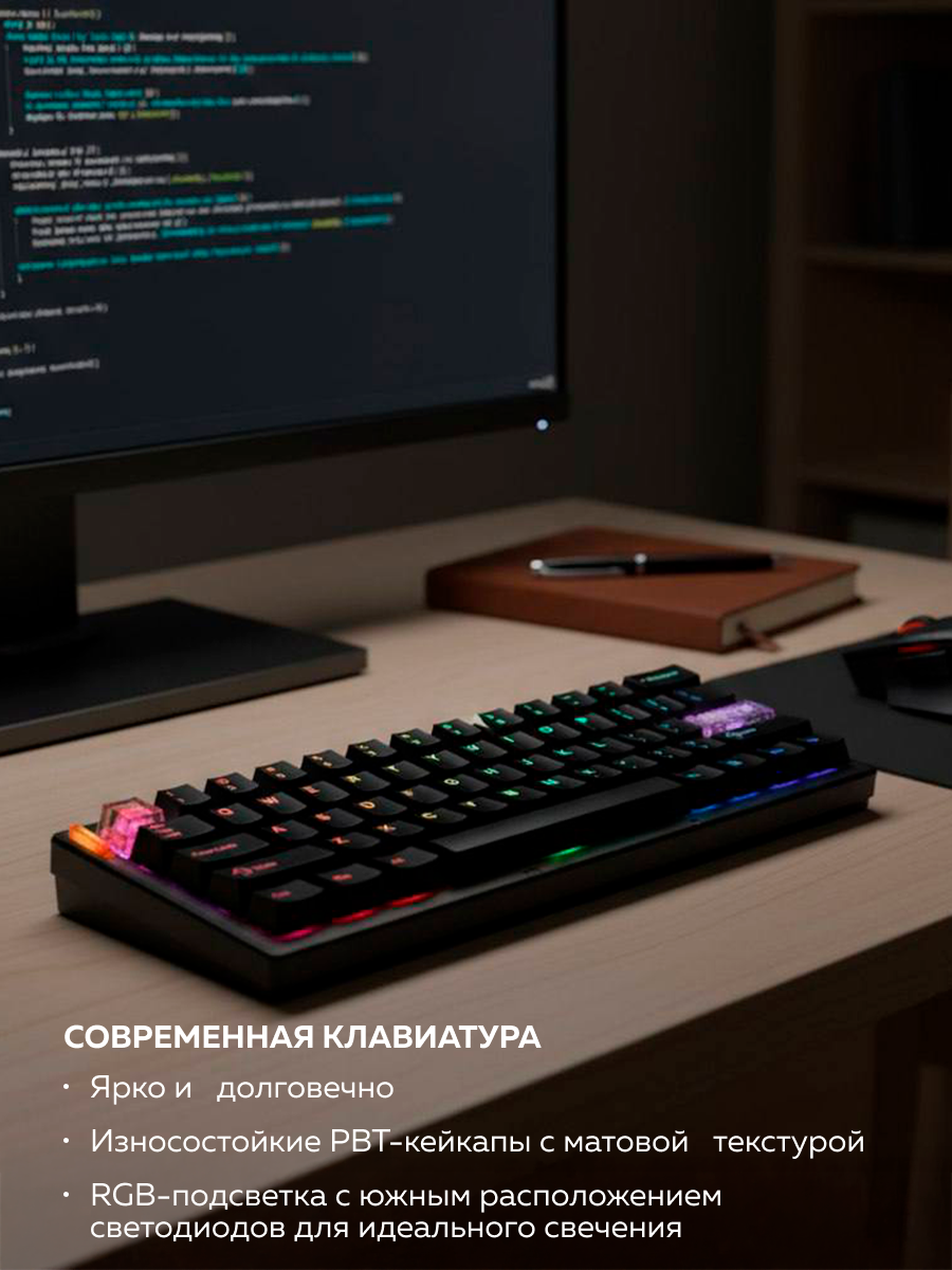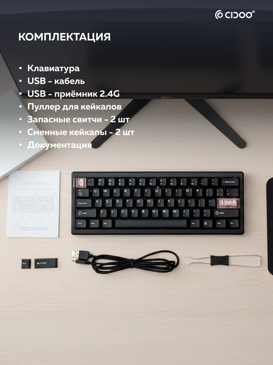 | Комплектация | Клавиатура, руководство, кабель Type-C, сменные кейкапы, Puller для клавиш, Puller для свитчей, пылезащитный чехол |