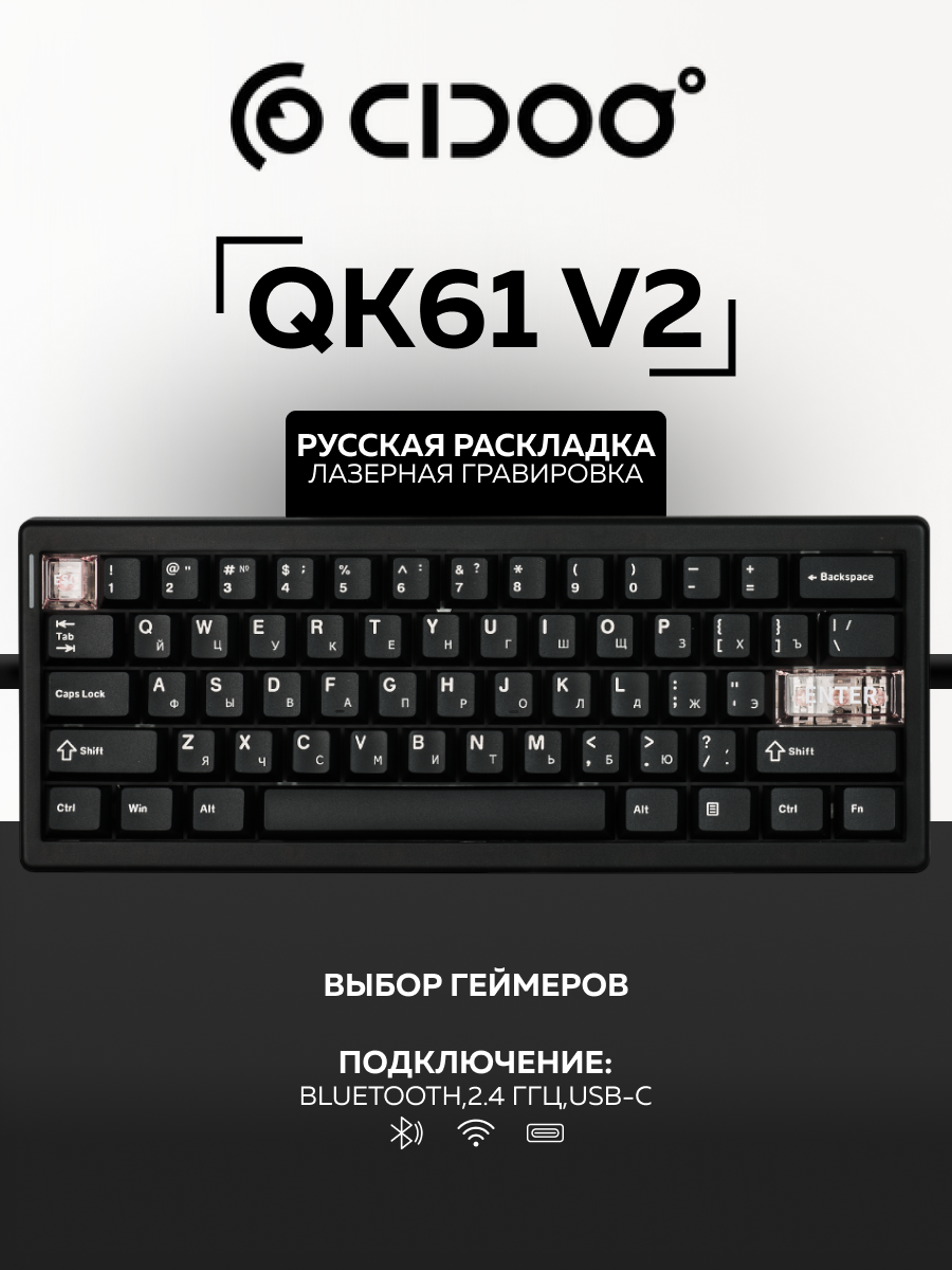 Купить Беспроводная механическая клавиатура Cidoo QK61 V2 (Black), русская раскладка с доставкой по всей России.