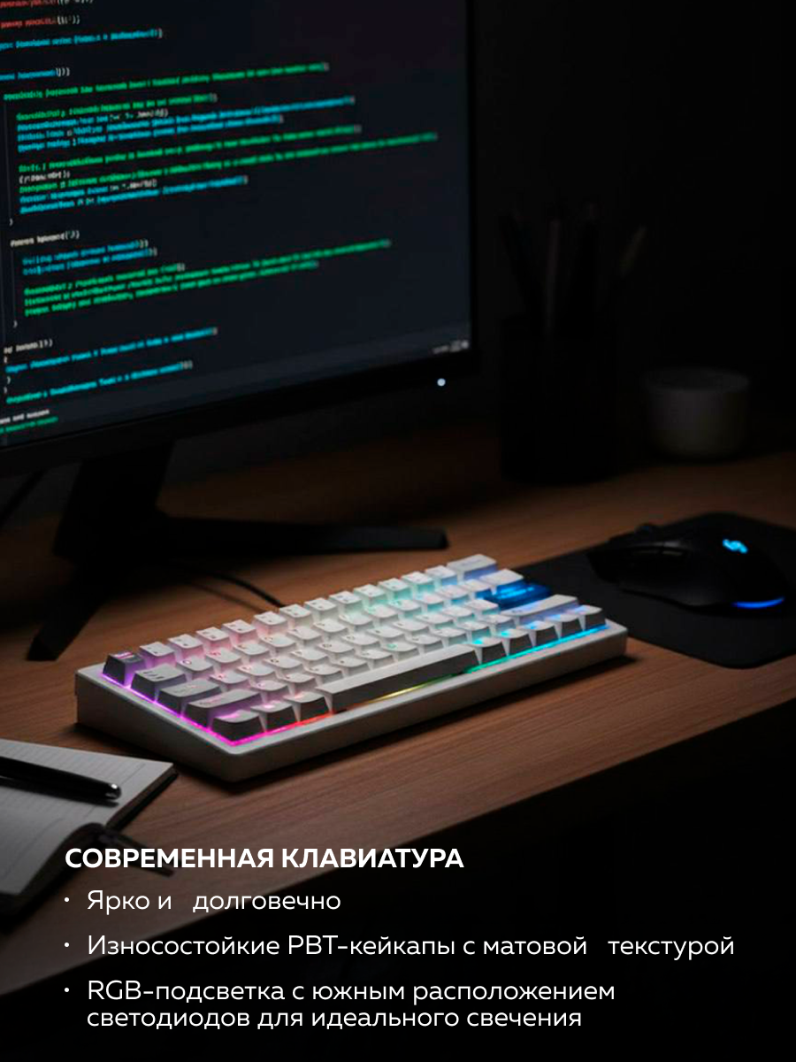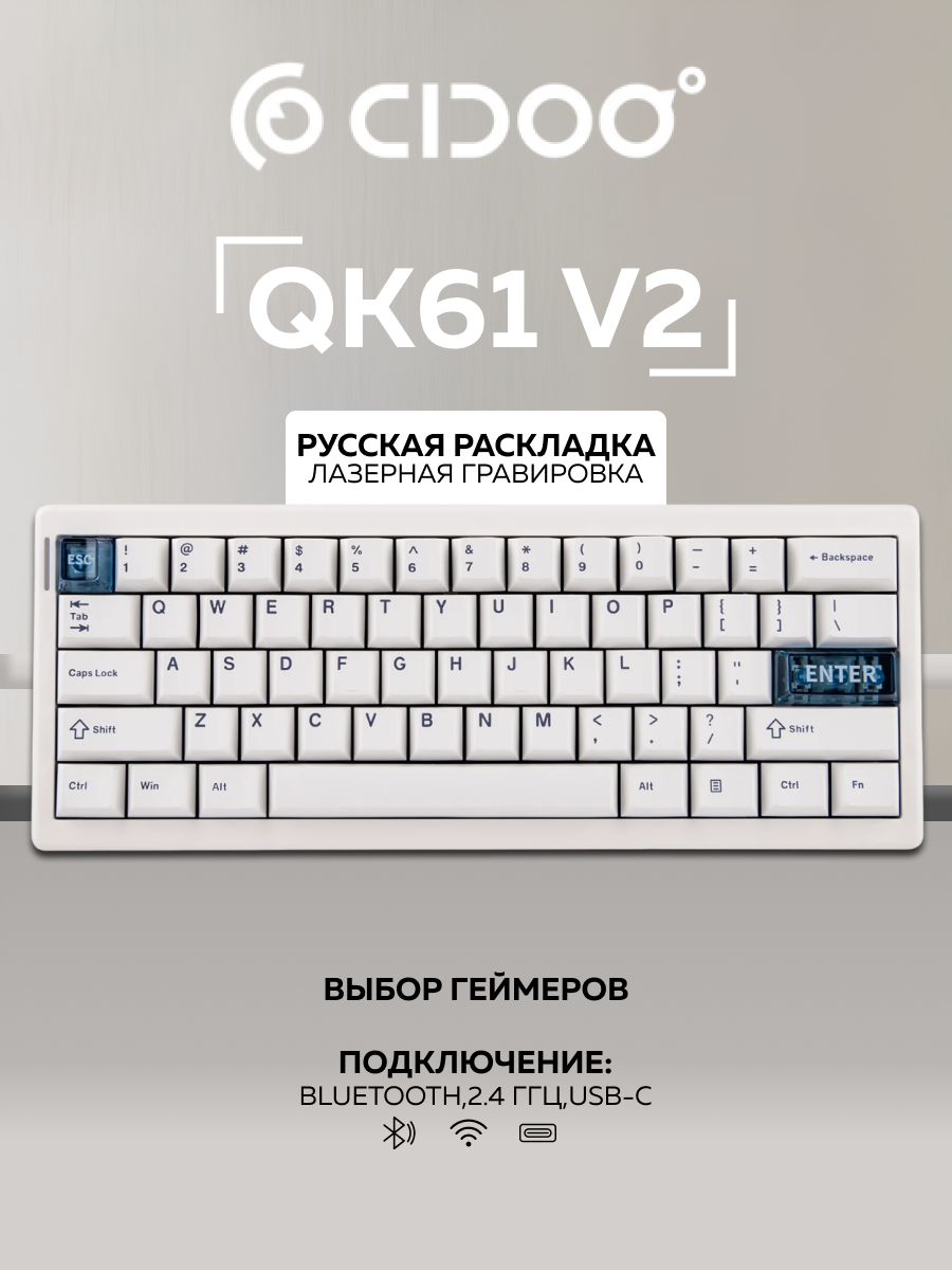 Cidoo Qk61 V2 Игровая клавиатура беспроводная, Английская раскладка, белый: сравнение цен, характеристики, фото, актуальное наличие и цены.