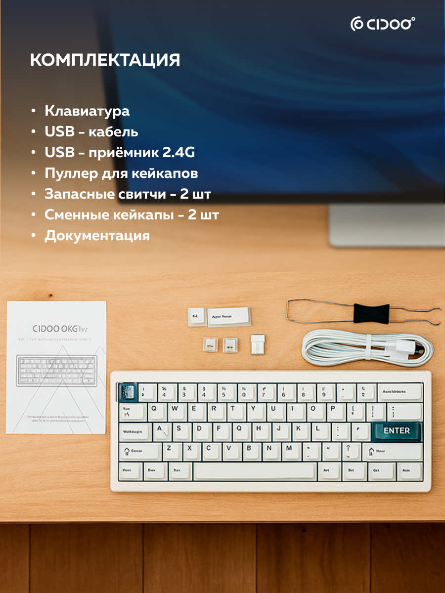 | Комплектация | Клавиатура, руководство, кабель Type-C, сменные кейкапы, Puller для клавиш, Puller для свитчей, пылезащитный чехол |