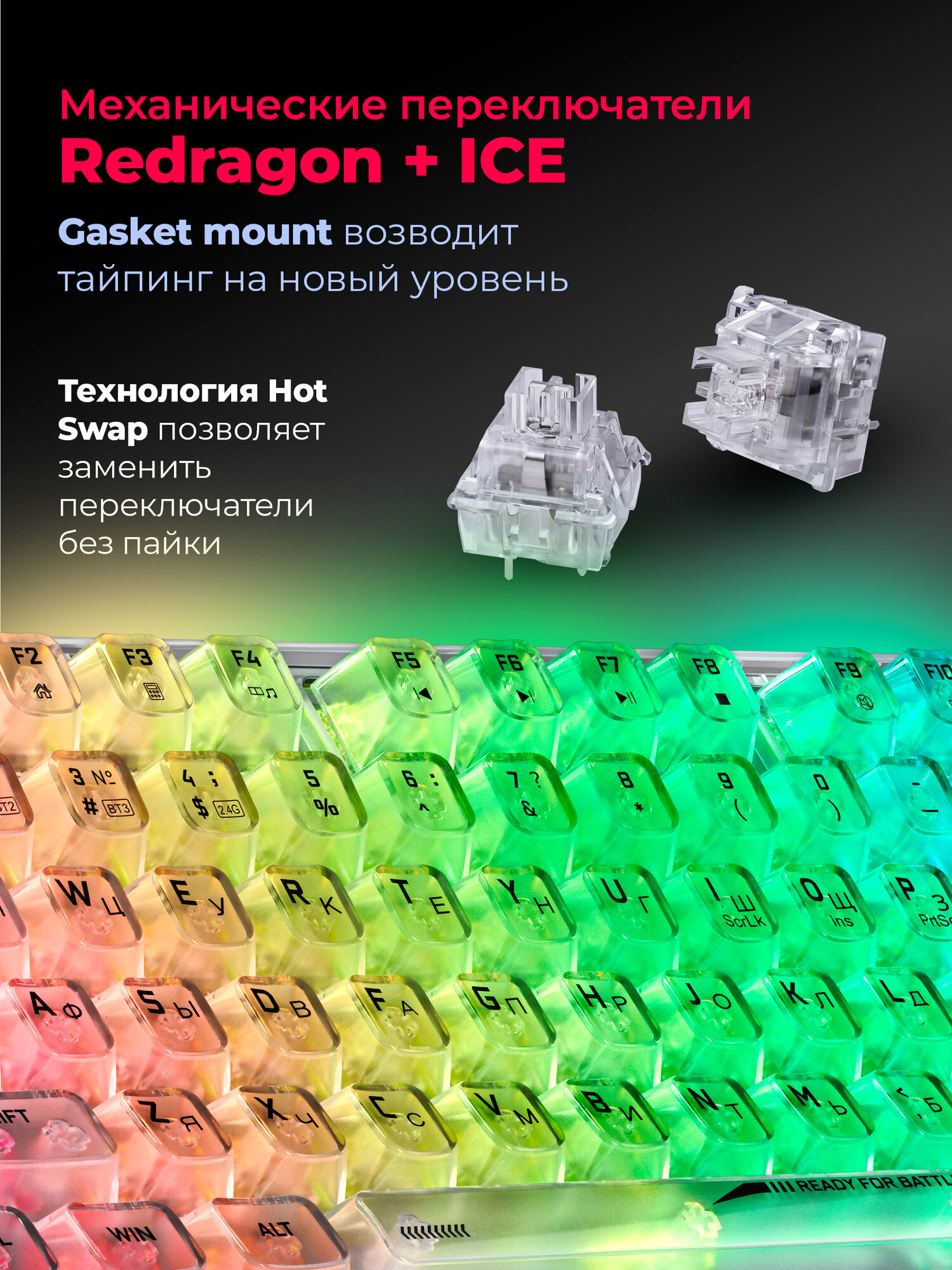 Купить Клавиатура Redragon Elf Pro (прозрачный/белый) с доставкой по всей России.