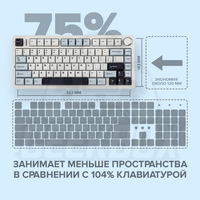 F75 обладает звукоизоляцией пятислойного изоляционного материала, включая два слоя порона, IXPE прокладку переключателя, PET звукоусиливающий прокладку и нижний силиконовый прокладку. Такое изысканное конструкционное решение значительно снижает шум и резонанс при печатании, создавая спокойную и сосредоточенную среду для работы