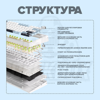 Клавиатура обладает оптимизированным компактным layout, который позволяет сохранить все необходимые клавиши в меньшем размере, идеально подходящий для современных рабочих столов и мобильных конфигураций. Инновационная gasket структура обеспечивает гибкий, но твердый опыт печатания, уменьшая усталость во время длительного использования, сохраняя при этом консистентный и отзывчивый ощущение клавиш
