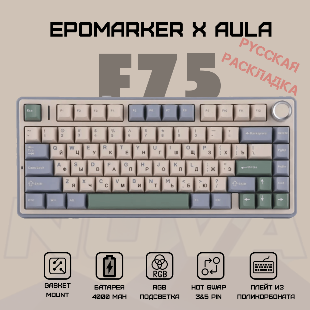 Купить Беспроводная механическая клавиатура Epomaker x Aula F75 русская раскладка с доставкой по всей России. Беспроводная механическая клавиатура Epomaker x Aula F75 русская раскладка: сравнение цен, характеристики, фото, актуальное наличие и цены.