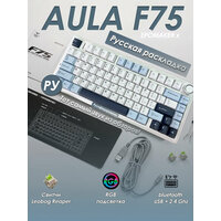 Купить Беспроводная механическая клавиатура Epomaker x Aula F75 русская раскладка, белый-синий-черный с доставкой по всей России.
