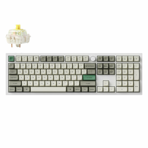 Полноразмерная (100%) механическая клавиатура Keychron Q6 Max - 3 типа подключения (Bluetooth; радиоканал 2,4 ГГц; провод), 108 клавиш, ANSI, с поддержкой QMK/VIA, корпус из алюминиевого сплава, Gasket Mount, цвет Shell White, переключатели Gateron Jupiter Banana, горячая замена переключателей, PBT-кейкапы KSA профиль, EN - двойное литье (Double Shot), RGB подсветка, шумоизоляция, вращающаяся ручка, аккумулятор 4000 mAh, размеры без клавиш 446 x 137 x (20,1 спереди – 32,6 сзади) мм, вес 2184 г.