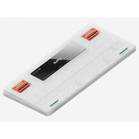 Клавиатуру можно подключить через Bluetooth, адаптер 2.4G или кабель USB Type-C. Переключатель на задней панели позволяет задать нужный режим. Bluetooth режим поддерживает подключение четырех устройств одновременно. Питается от аккумулятора на 4000 мАч. Он позволяет работать в беспроводном режиме до 57 часов без подзарядки с включенной подсветкой и до 220 часов с выключенной подсветкой. Мультимедиа и дополнительные FN функции совместимы с MacOS и Linux.