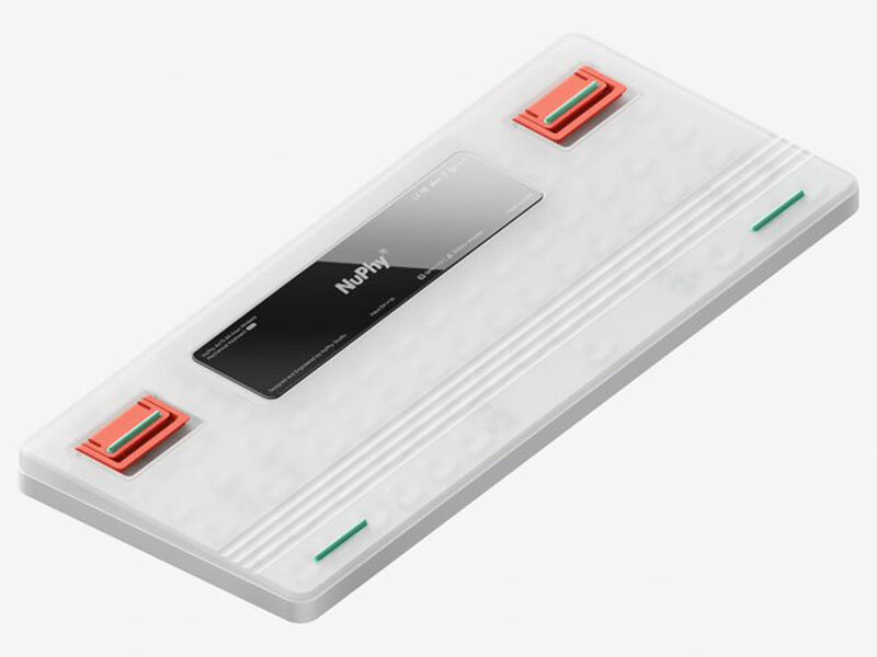 NuPhy сделали верхнюю часть корпуса из алюминия, а нижнюю — из полупрозрачного пластика. Это помогает клавиатуре работать без помех в беспроводном режиме и делает конструкцию более легкой. Низкопрофильные кейкапы из PBT пластика с применением double-shot технологии. Гладкие и приятные на ощупь, а символы не стираются и не чувствуются при печати. На смену магнитным ножкам пришли регулируемые — они позволят приподнять клавиатуру и изменить угол наклона для комфортной печати, а прорезиненный низ не даст клавиатуре сдвинуться с места.