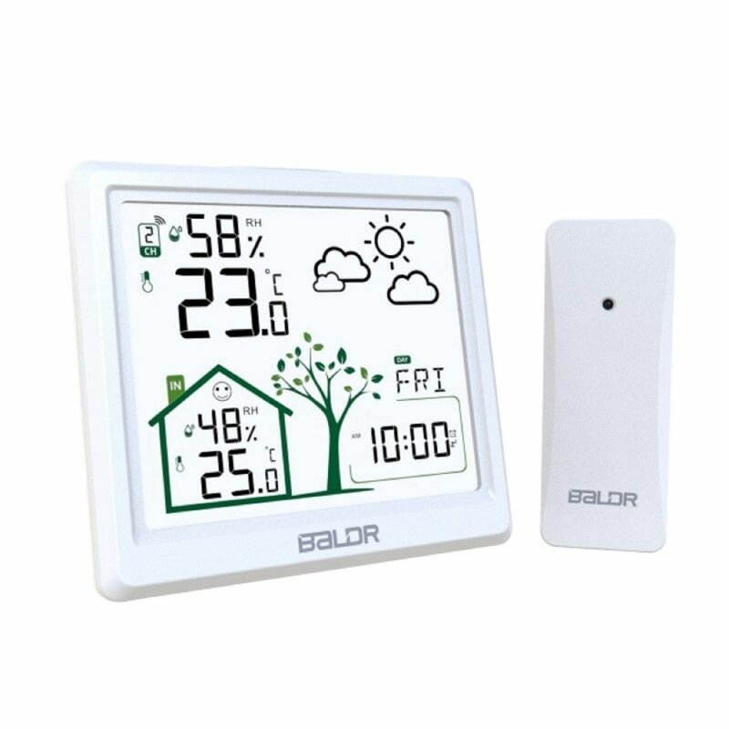 Цветная прогностическая станция BALDR оснащена большим, легко читаемым дисплеем с подробными данными о температуре, влажности и прогнозе. В комплект входит беспроводной дистанционный датчик для определения температуры и влажности наружного воздуха. Светодиодный экран также показывает барометрическое давление, что делает прогноз погоды на следующие 12+ часов более точным. Контролируйте микроклимат в помещении и на улице с помощью данных, включая самые высокие и самые низкие значения температуры и влажности. Особенности и преимущества: