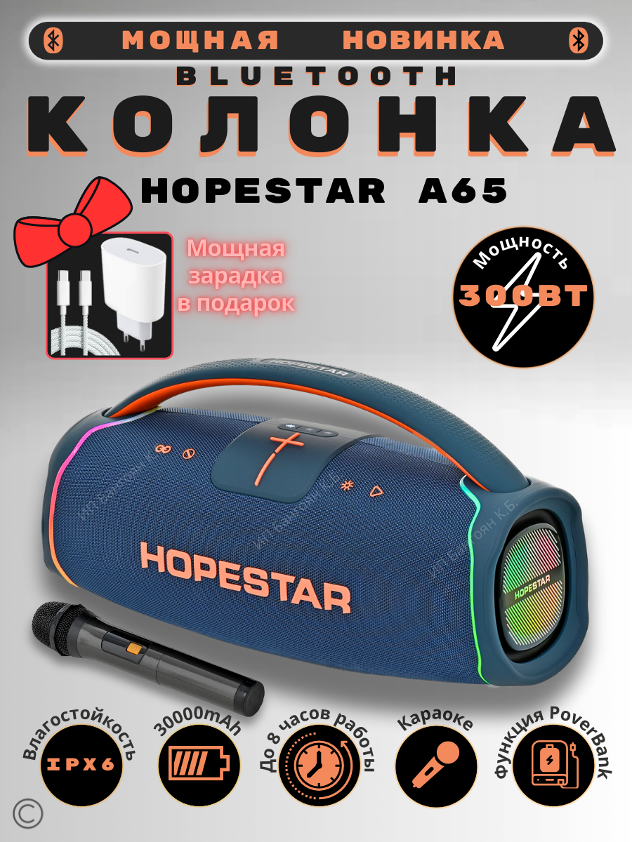 Купить Беспроводная музыкальная колонка Bluetooth с микрофоном — А65 Blue с доставкой по всей России.