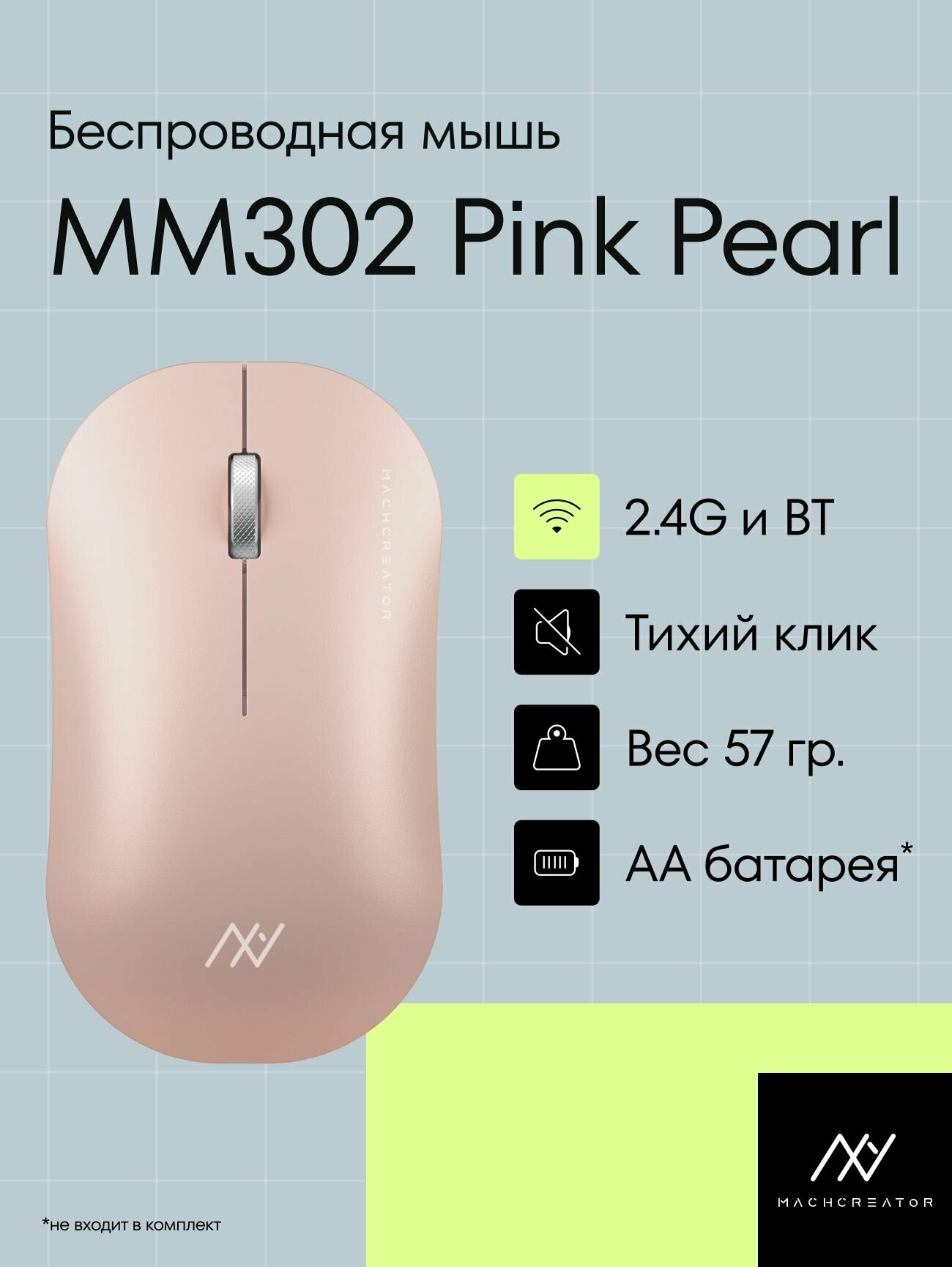 Купить Беспроводная мышь Machcreator MM302 Pink Pearl, 1600DPI, 3 кнопки, 250 Гц, тихий клик с доставкой по всей России.