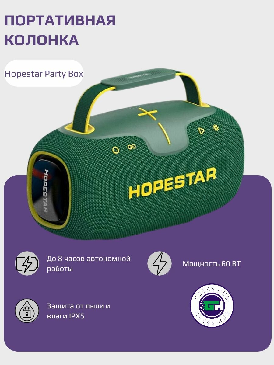 Беспроводная портативная колонка Hopestar Party Box 210 mini, мощность 30 Вт, зеленая