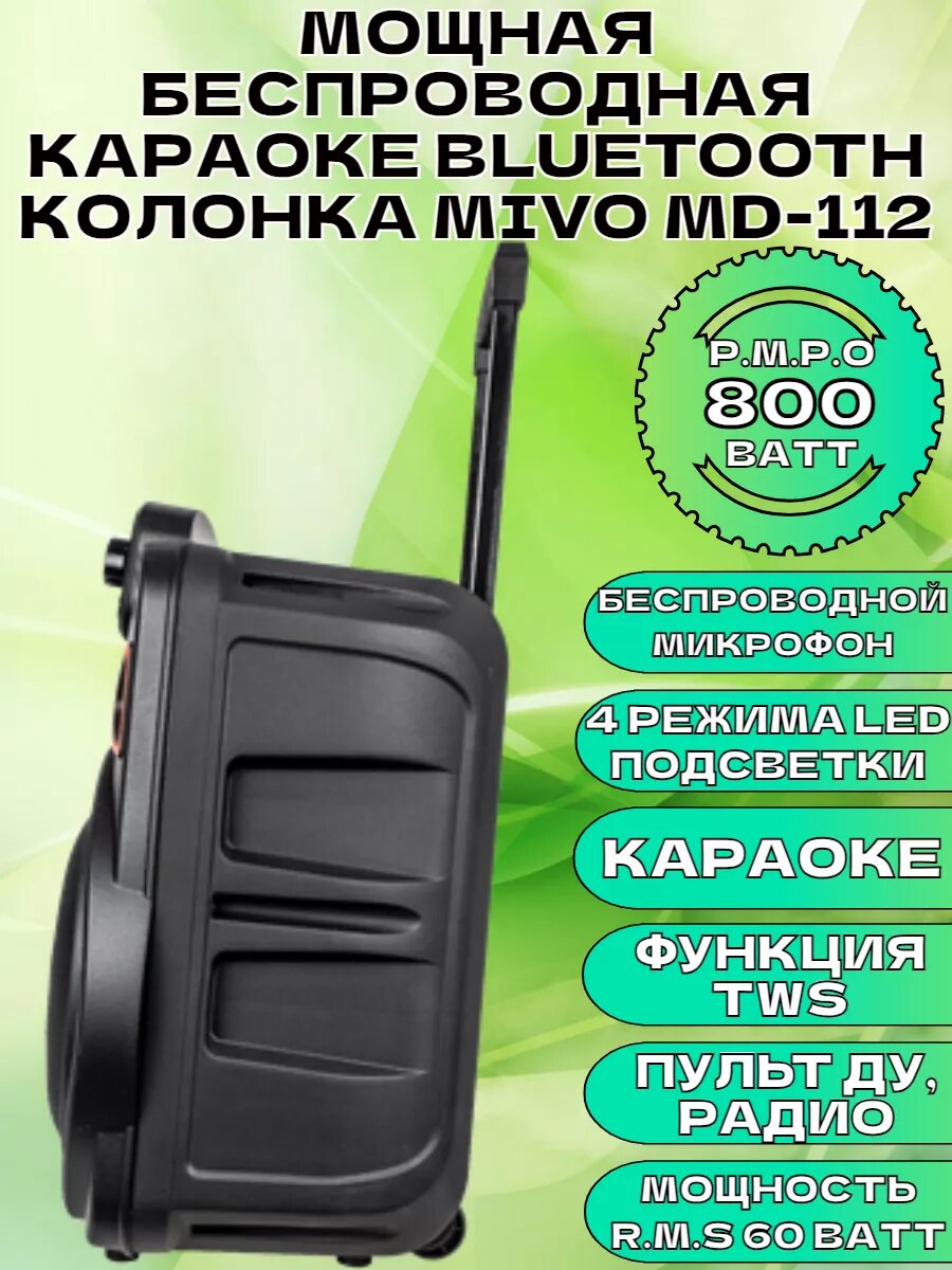 Портативная акустика Mivo MD-112 - это не просто колонка, это целый развлекательный центр. Она оснащена функцией караоке, что позволяет вам петь любимые песни, не ограничивая себя в выборе репертуара.