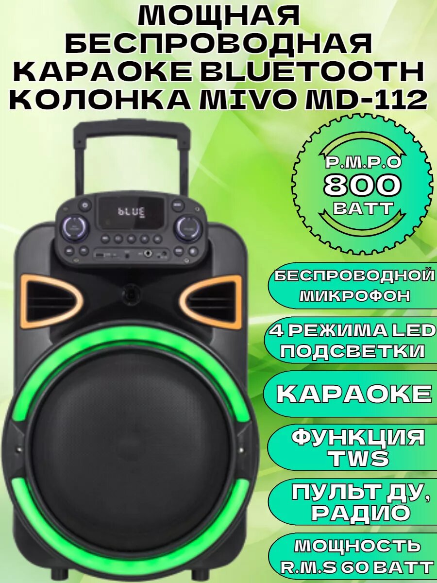 Mivo MD-112 - это не просто колонка, это целый развлекательный центр. Она оснащена функцией караоке, что позволяет вам петь любимые песни, не ограничивая себя в выборе репертуара.