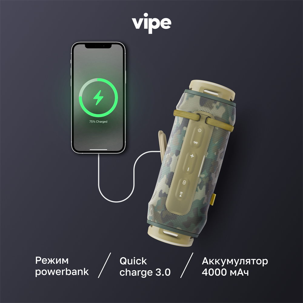 Купить Портативная беспроводная колонка vipe SPARK, 40 Вт, влагозащита IP67, камуфляж с доставкой по всей России.