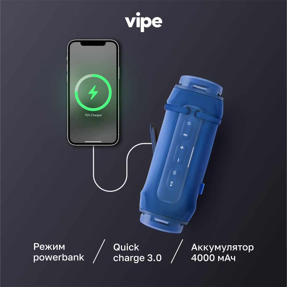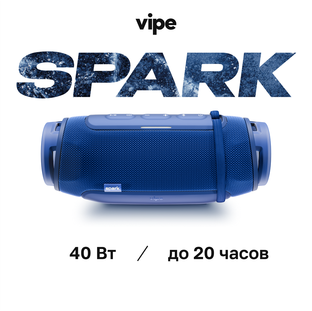 Портативная беспроводная колонка vipe SPARK, 40 Вт, влагозащита IP67, синяя: сравнение цен, характеристики, фото, актуальное наличие и цены.