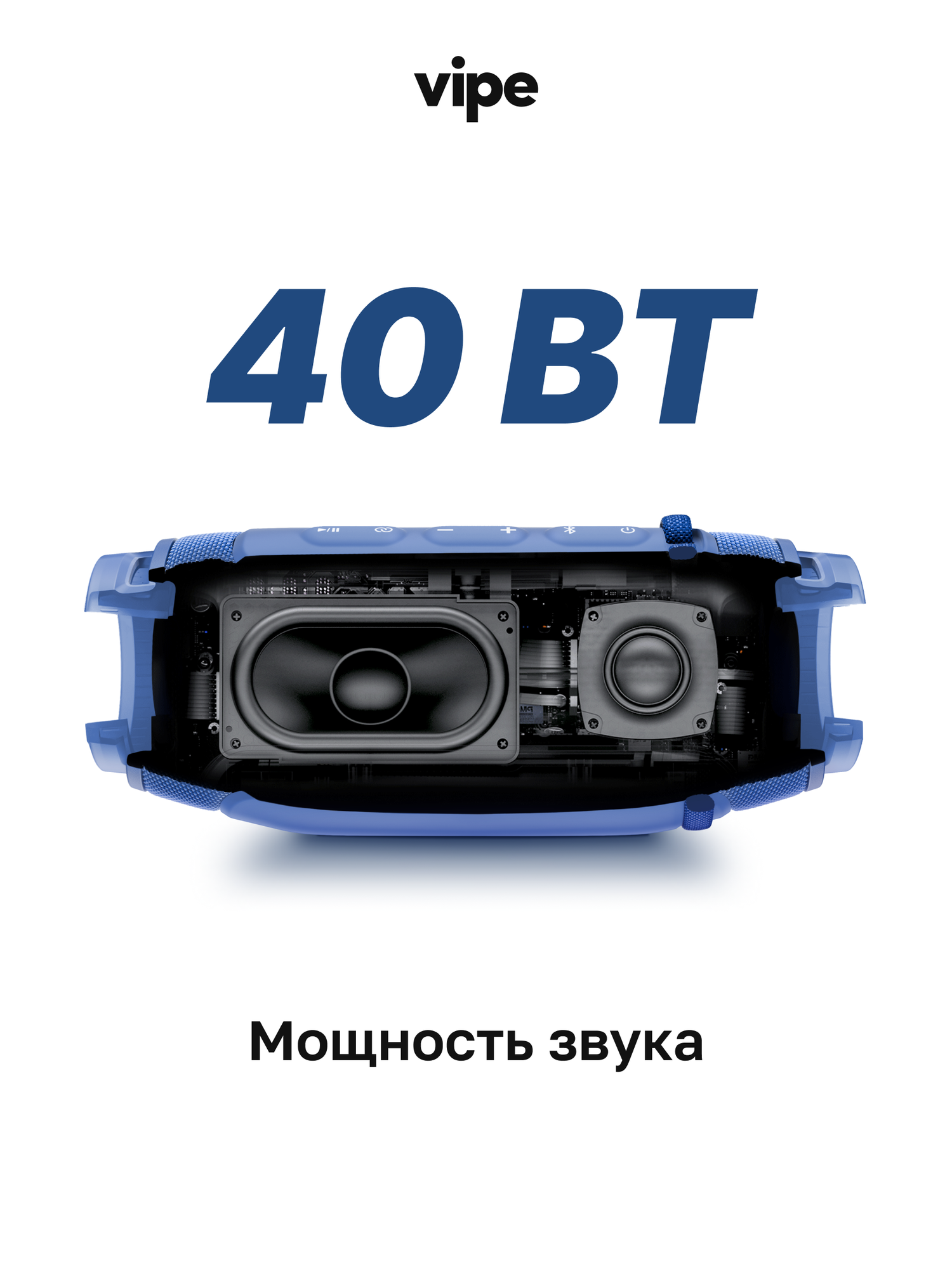 Портативная беспроводная колонка vipe SPARK, 40 Вт, влагозащита IP67, синяя