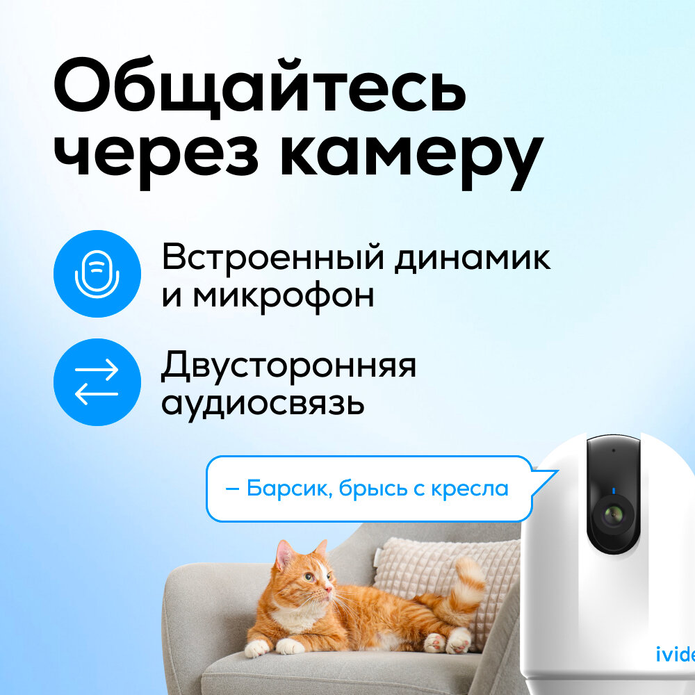Компактная беспроводная поворотная WiFi 2-мегапиксельная IP-камера с микрофоном для квартиры, офиса, магазина и других помещений, разрешение до 1920x1080, динамик, ночная ИК-подсветка, датчик движения, запись на карту памяти microSD, подключение к «облаку» iVideon.