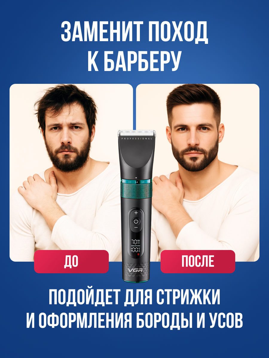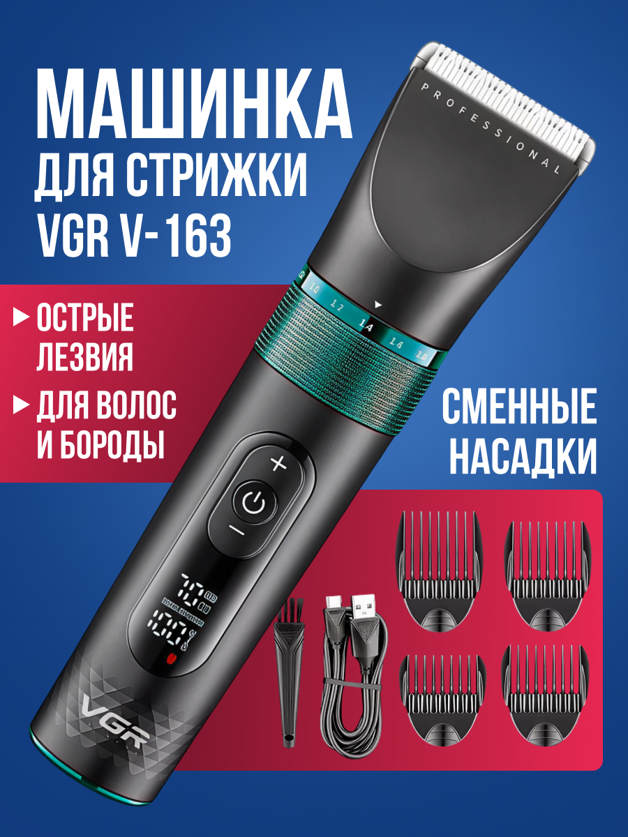 Беспроводная профессиональная машинка для стрижки волос и бороды VGR V-163 / 4 насадки, LED дисплей: сравнение цен, характеристики, фото, актуальное наличие и цены.