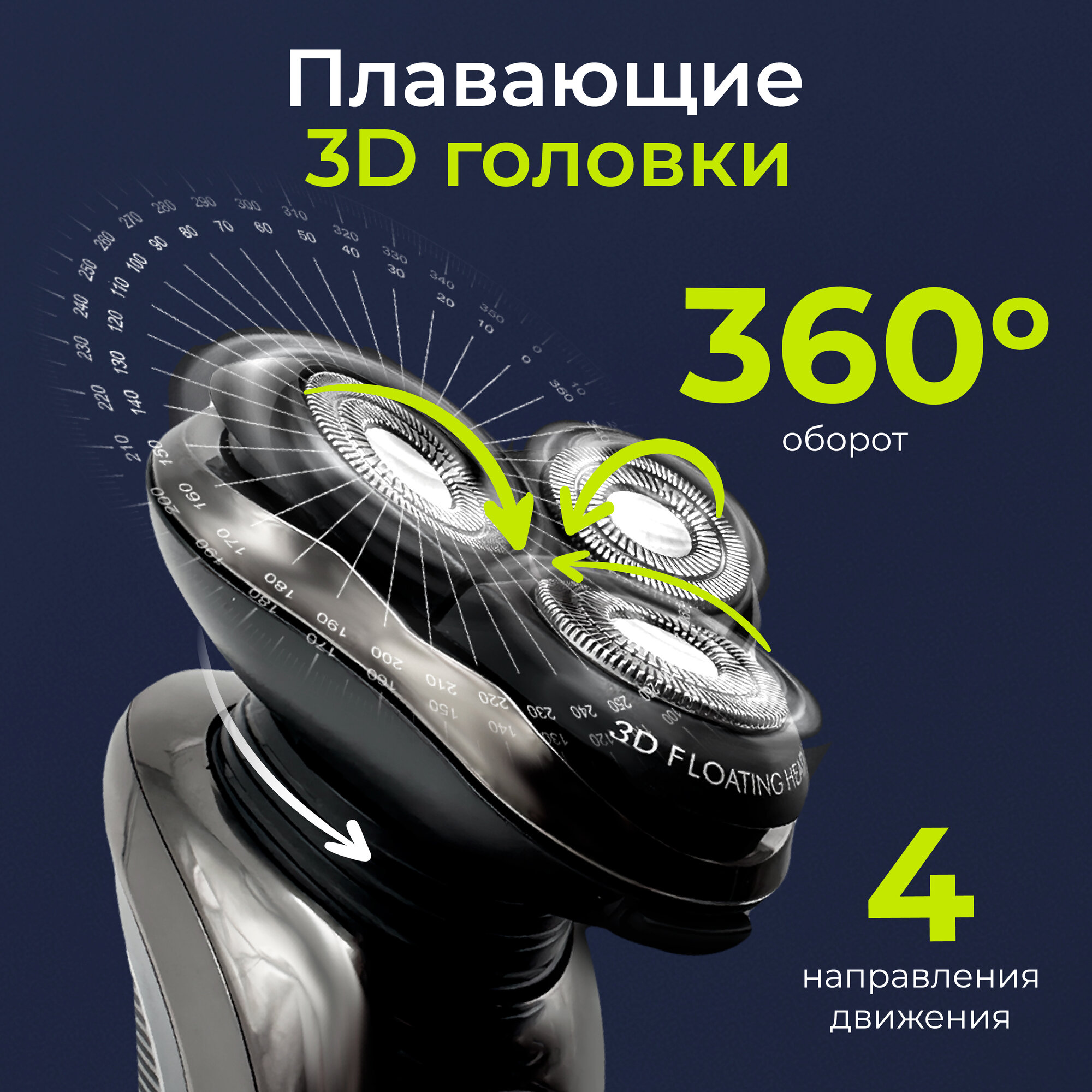 Купить Электробритва мужская Ohmigo, 3 плавающие бритвенные головки. Ультрафиолетовая и термическая чистка с доставкой по всей России.