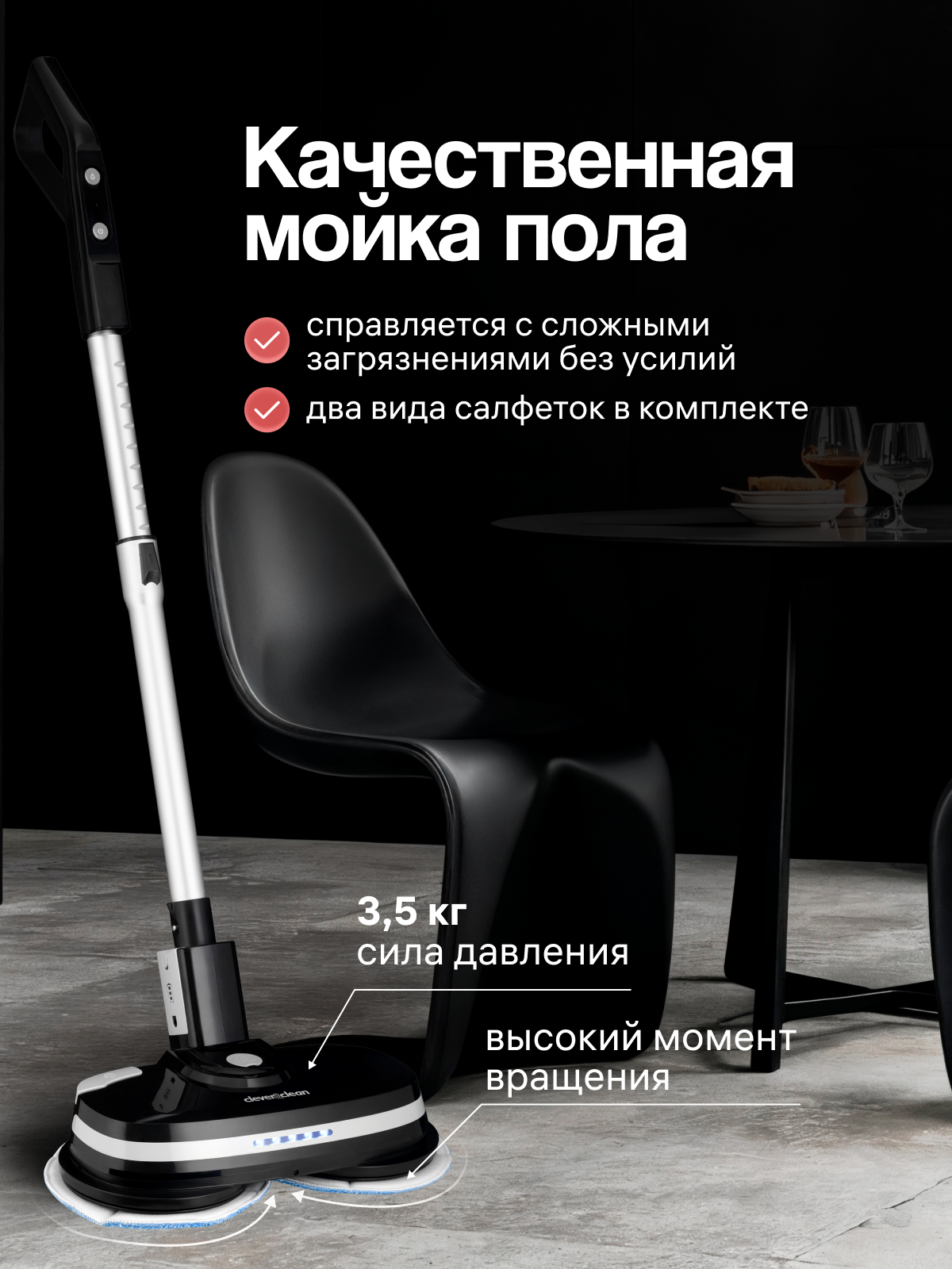 Купить Беспроводная электрошвабра Clever&Clean Glider A5. Распыление жидкости, вращающиеся салфетки, беспроводной полотёр с доставкой по всей России.