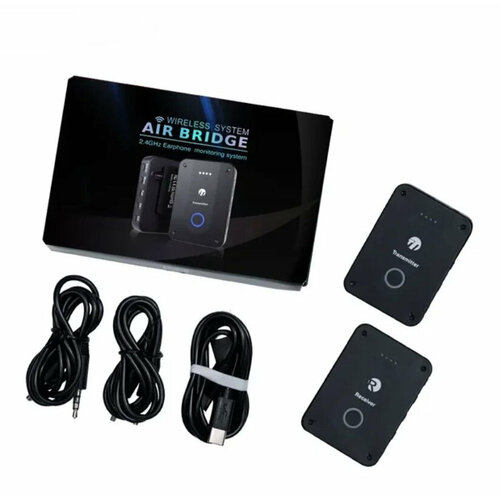 Аксессуары в комплекте: передатчик x1, приёмник, USB-кабель для зарядки x1, аудиокабель x2