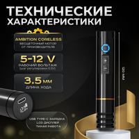 Внимание! Аккумулятор тату машинки заряжается с помощью USB Type-C и не поддерживает быструю/сверхбыструю зарядку fast charge. Использование сторонних устройств для быстрой зарядки может привести к повреждению аккумулятора и нарушить его работу. Рекомендуется использовать стандартный кабель и зарядное устройство.