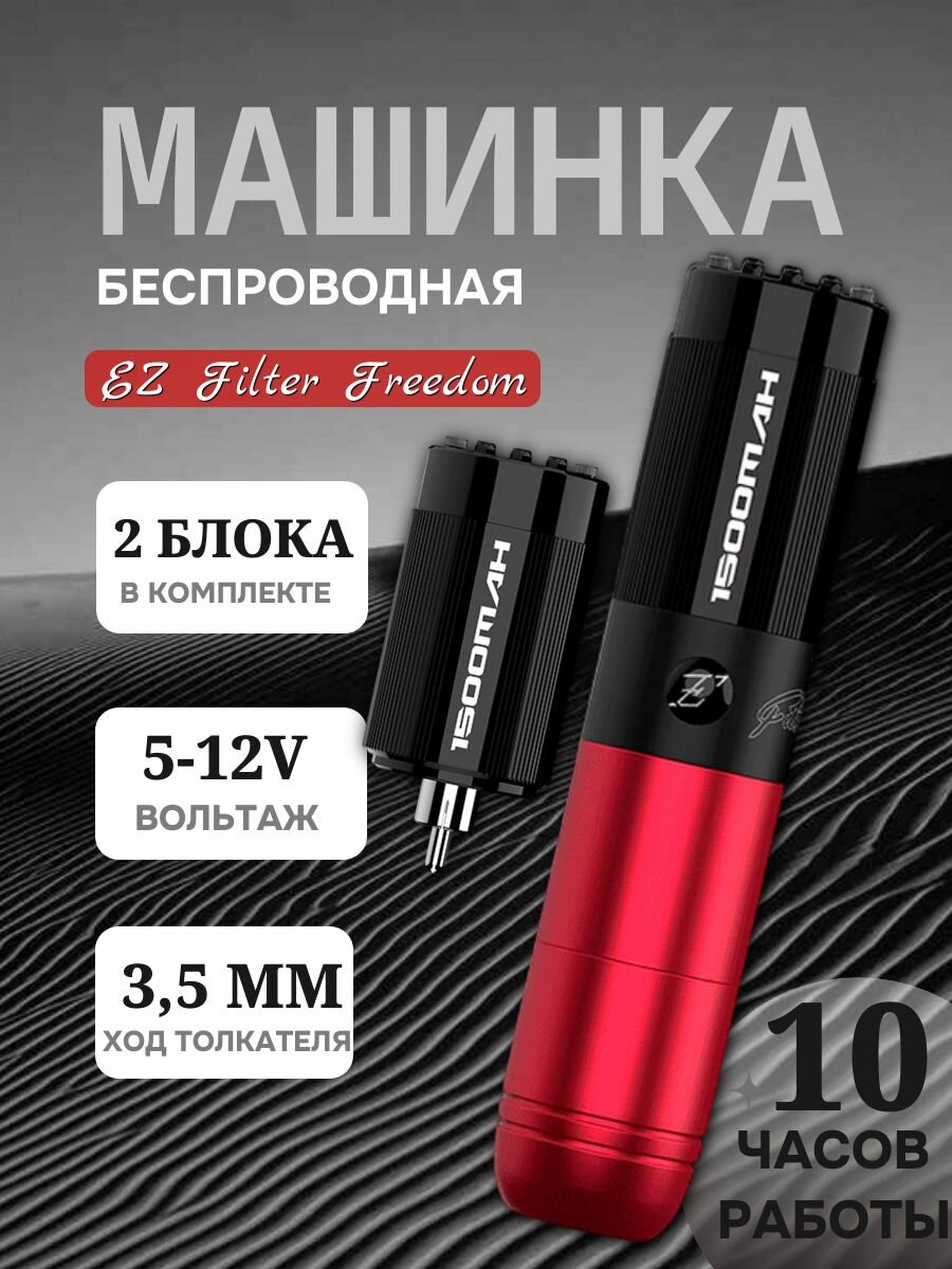 Беспроводная тату машинка для перманентного макияжа EZ Filter Freedom Red (с доп блоком): сравнение цен, характеристики, фото, актуальное наличие и цены.