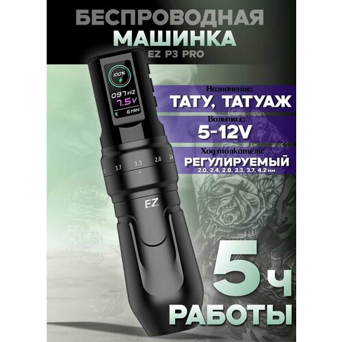 Беспроводная тату машинка для перманентного макияжа, татуажа EZ P3 Pro Matte Black: сравнение цен, характеристики, фото, актуальное наличие и цены.