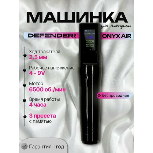 DEFENDERR ONYX AIR - это короткоходная роторная машинка, которая является универсальным инструментом для любой техники татуажа.