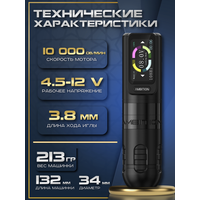 Оснащена высокочувствительным сенсорным дисплеем, что в корне меняет представление о работе с привычными беспроводными тату машинками. Переключать вольтаж можно даже тогда, когда вы уже в перчатках, а машинка обернута барьерной защитой.