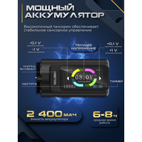 Экран отображает рабочий вольтаж, оставшийся заряд батареи, частоту ударов и таймер. Благодаря этим сведениям, мастер сможет понимать, как распределять нагрузку во время сеанса.