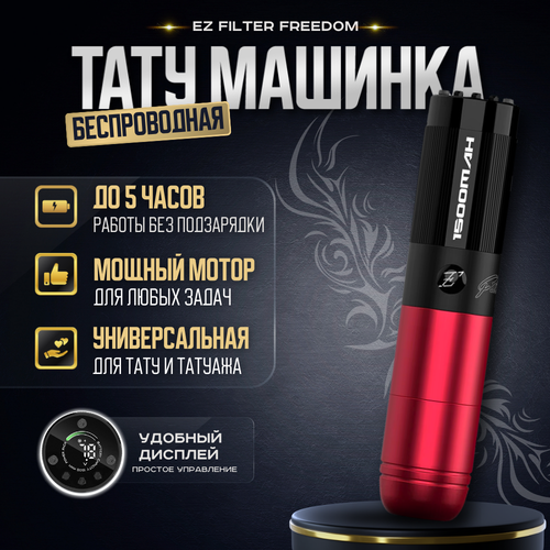 Купить Беспроводная тату машинка EZ Filter Freedom Red для татуировки и татуажа, красная с доставкой по всей России.