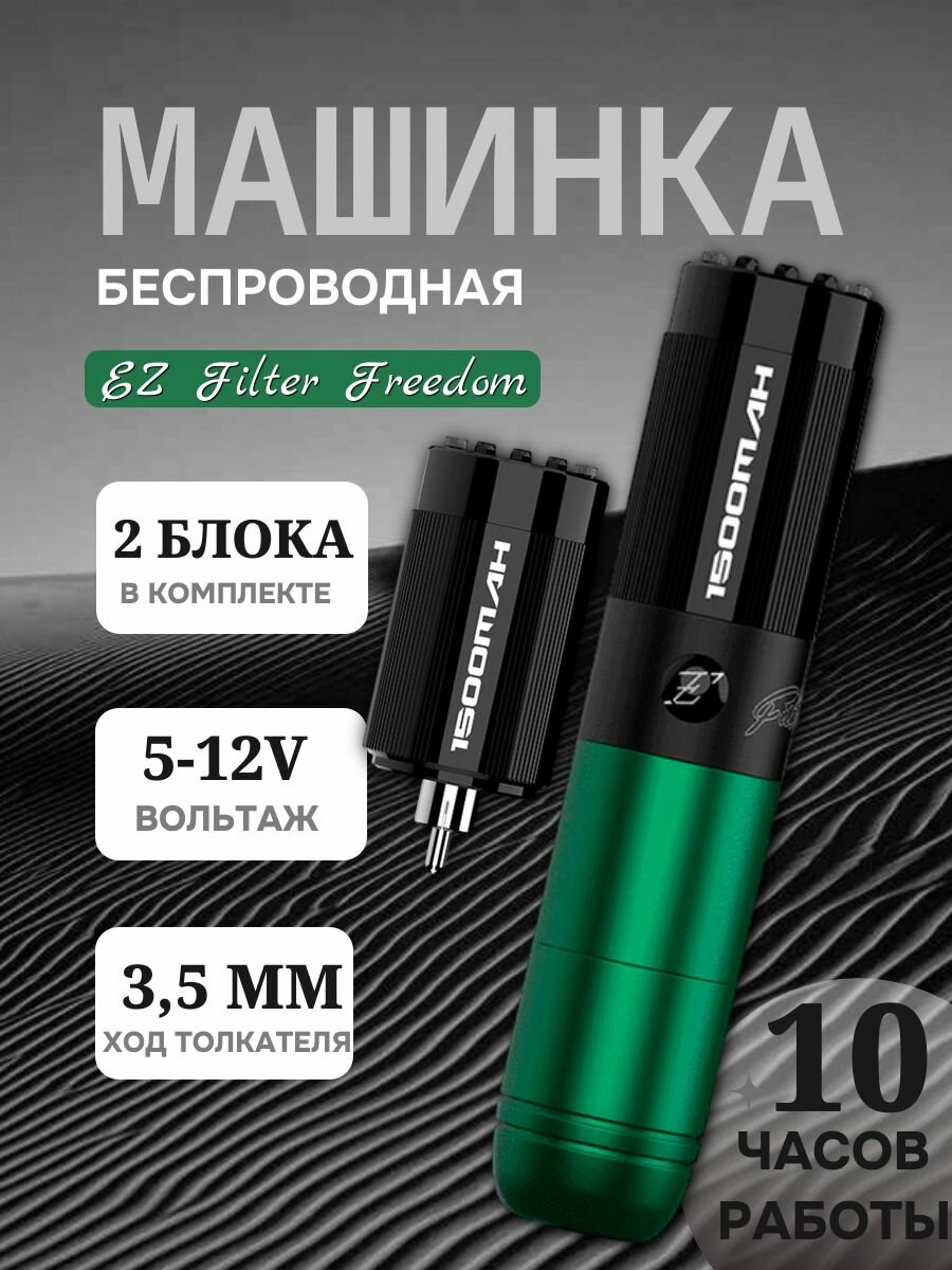 Беспроводная тату машинка с двумя блоками EZ Filter Freedom Green (аппарат для перманентного макияжа): сравнение цен, характеристики, фото, актуальное наличие и цены.