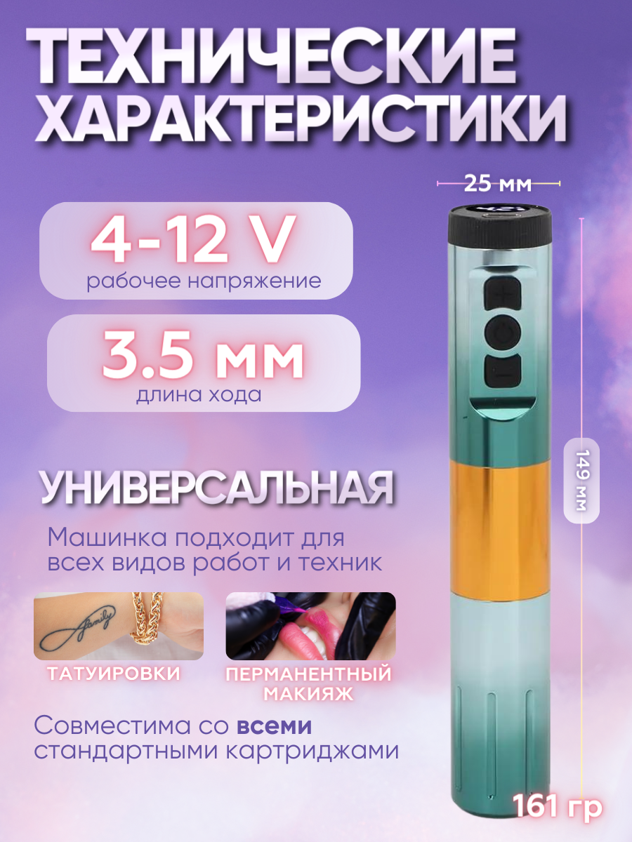 Беспроводная тату машинка Yilong Tony Pen — Green Gloss для татуировки и перманентного макияжа: сравнение цен, характеристики, фото, актуальное наличие и цены.