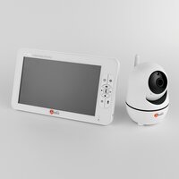Детский блок крепится на подставку и работает от собственного аккумулятора. Он также оснащен экраном, который позволяет наблюдать за ребенком в режиме реального времени.