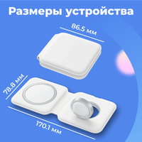 Черная беспроводная док-станция 2 в 1 - это стильное и компактное решение для зарядки двух гаджетов одновременно. Она совместима с устройствами Apple, Samsung, Huawei, Xiaomi и других производителей, поддерживающих стандарт беспроводной зарядки.