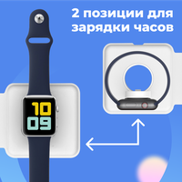 Станция оснащена держателем для Apple Watch, что позволяет удобно и безопасно заряжать часы. Это позволяет всегда иметь их под рукой и готовыми к использованию.
