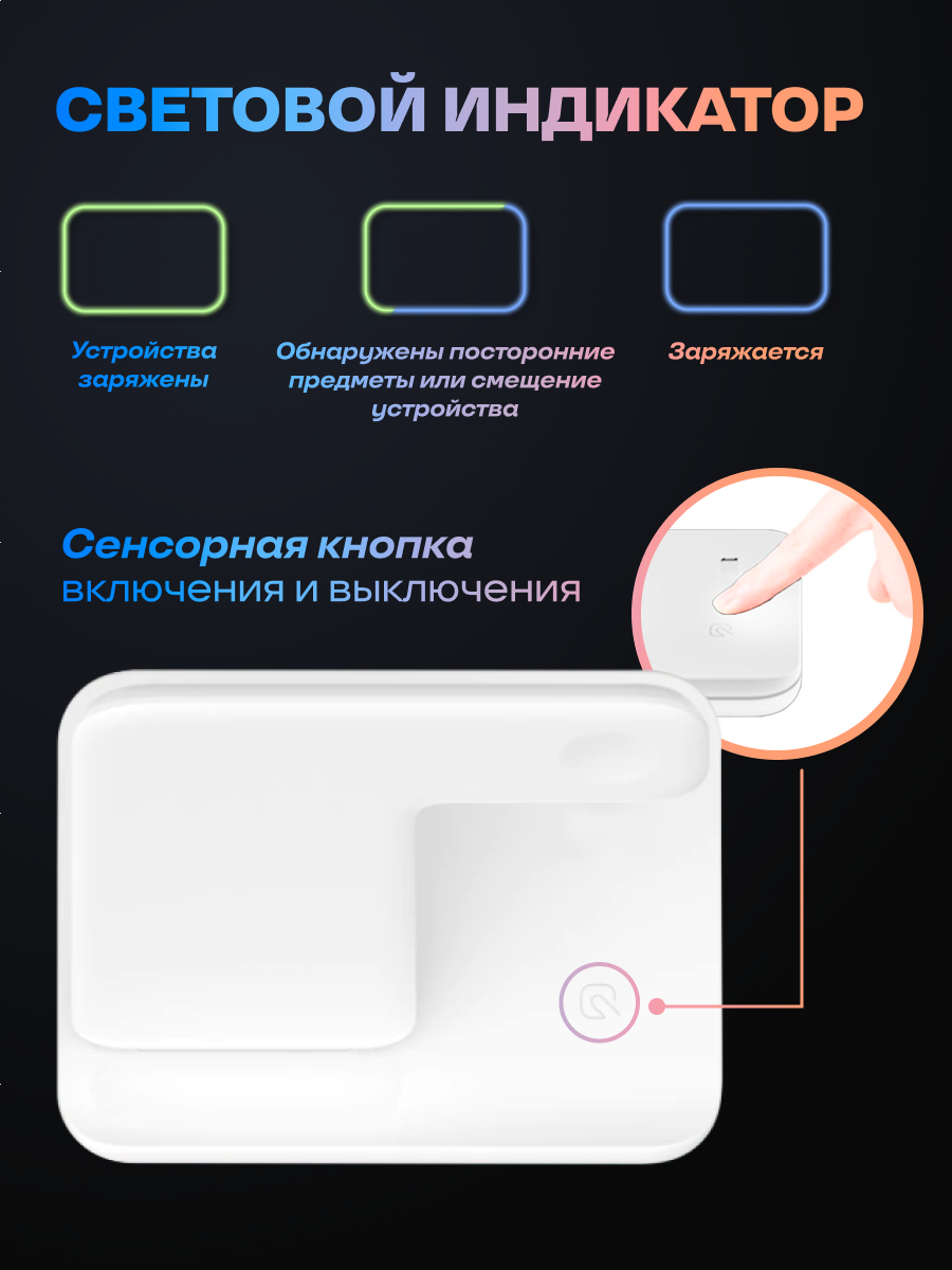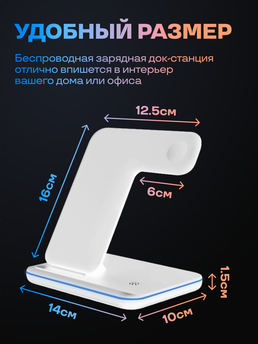 | Конструкция беспроводного устройства | для 1 телефона, для 2 телефонов, зона для Apple Watch, зона для беспроводных наушников, зона для умных часов |