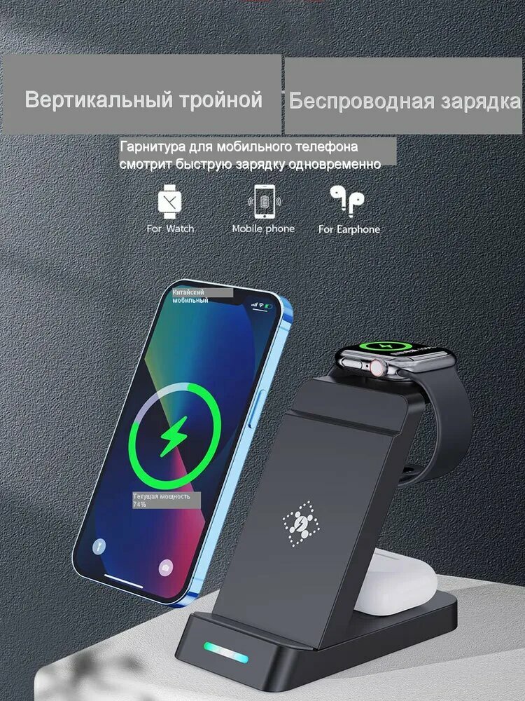 Беспроводное зарядное устройство «Три Яруса», для Samsung, 3в1, быстрая зарядка, чёрный: сравнение цен, характеристики, фото, актуальное наличие и цены.