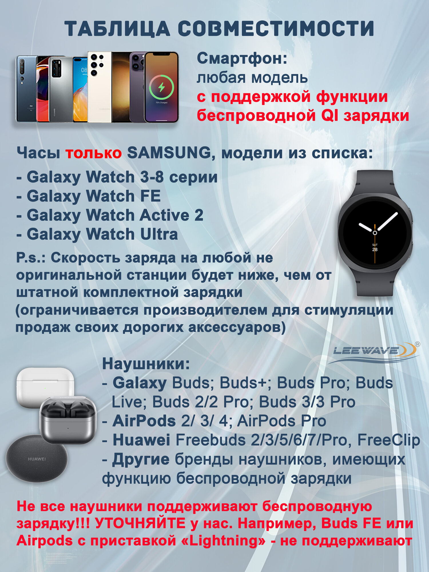 | Конструкция беспроводного устройства | для 1 телефона, зона для беспроводных наушников, зона для умных часов |