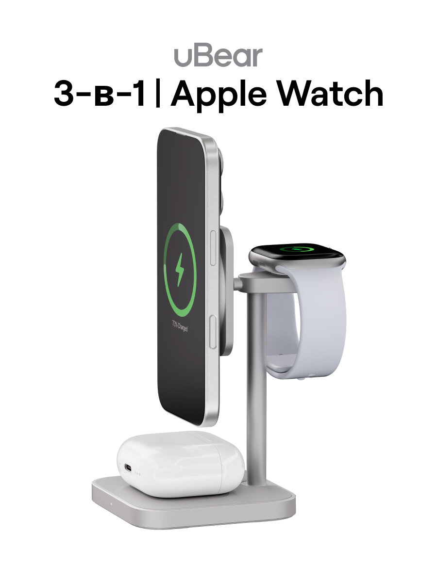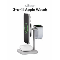Купить Беспроводная зарядная панель 3 в 1 Для IPhone, Apple Watch, Airpods uBear Evoke Qi2 25W Silver с доставкой по всей России.