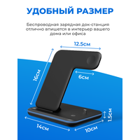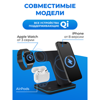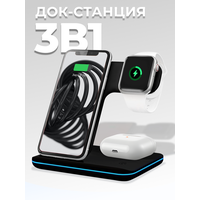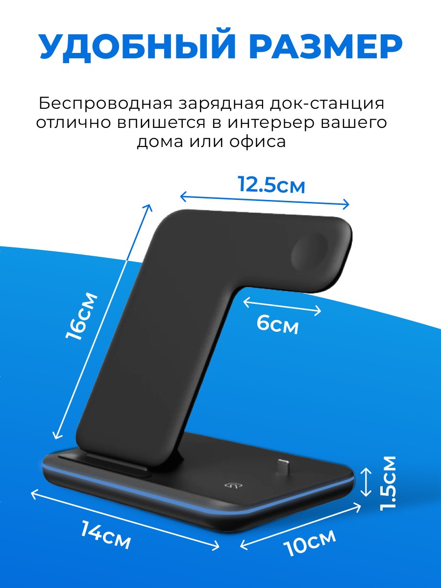 Стильная и удобная док-станция для одновременной зарядки смартфона, часов и наушников. Поддерживает быструю беспроводную зарядку (до 15W) для iPhone 8-16 серий, Samsung Galaxy, Xiaomi, Huawei и других Qi-совместимых устройств.