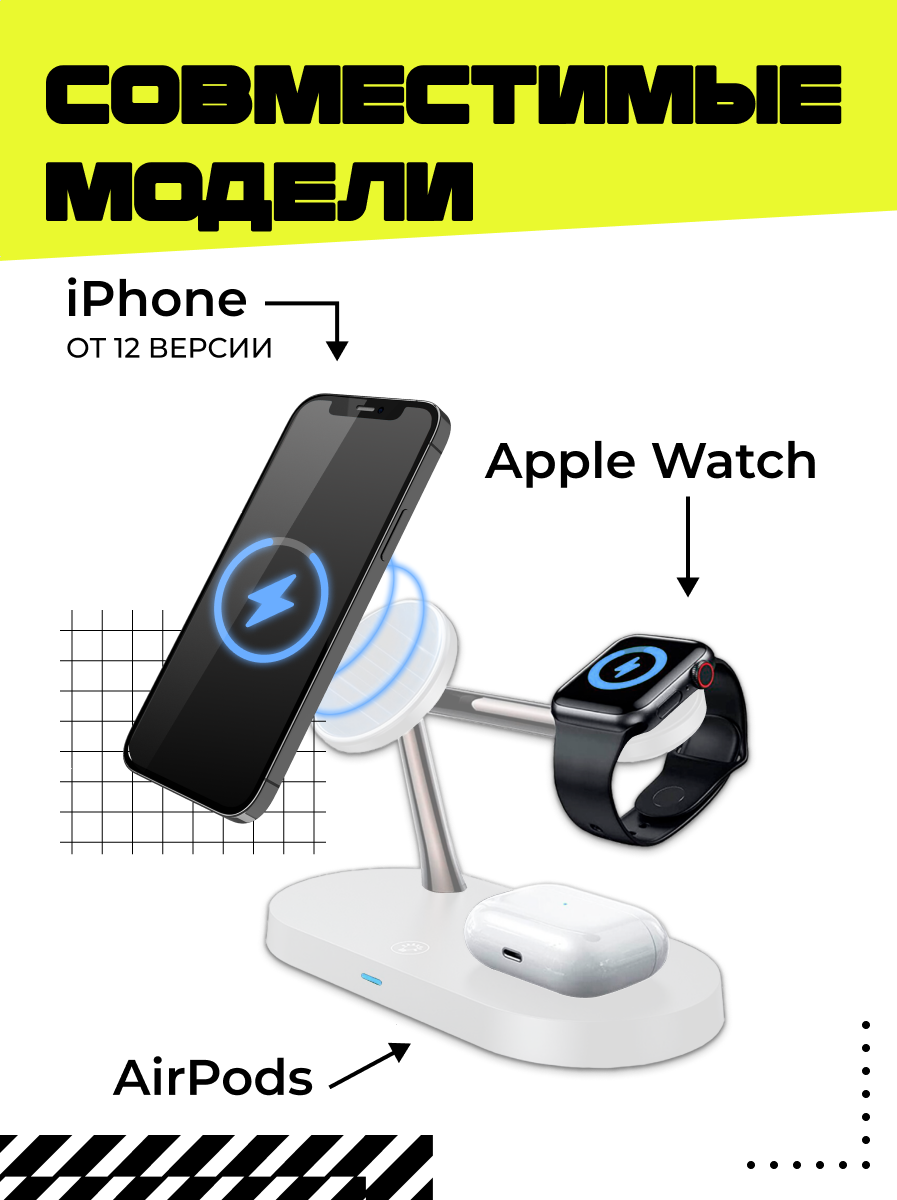 Беспроводная зарядка для iPhone, Samsung , Apple Watch, зарядная станция Apple магнитная, док станция 15W: сравнение цен, характеристики, фото, актуальное наличие и цены.