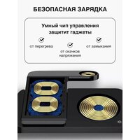 Беспроводная зарядка 3 в 1 поддерживает стандарт QI (Quick Charge), что обеспечивает быструю и эффективную зарядку ваших устройств.