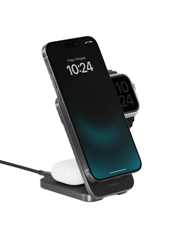 Беспроводная зарядка EnergEA MagTrio PLUS 3in1 magnetic wireless foldable charger Qi2 22.5W, серая: сравнение цен, характеристики, фото, актуальное наличие и цены.